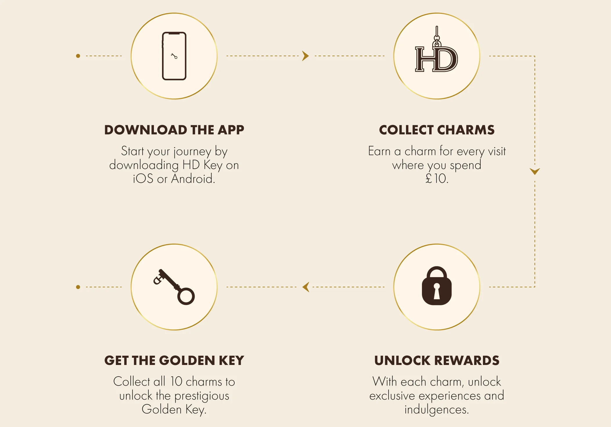 App users will no longer earn charms by collecting 1 point per £1 spend. Instead, you’ll simply unlock a new charm per qualifying visit, and each visit will get you one step closer to the Golden Key.