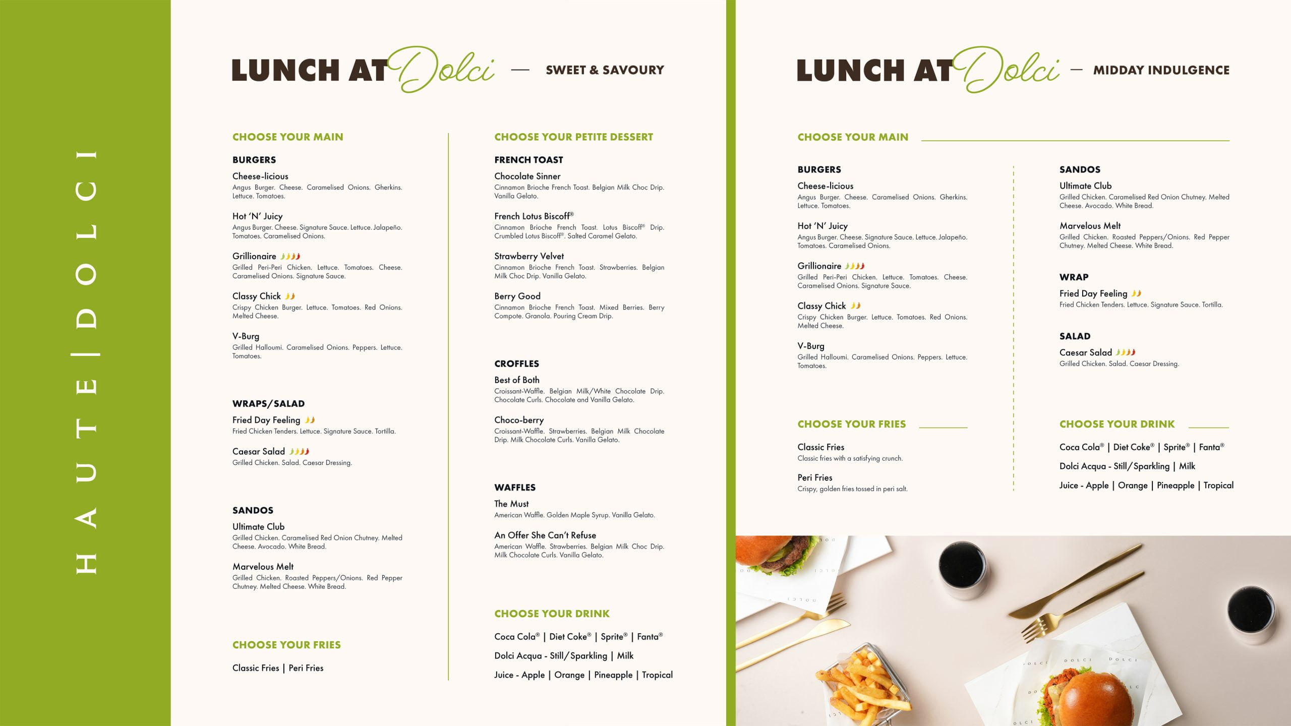 At Dolci, we believe that lunchtime should be a delightful break in your day. To make your midday meals even more special, we are excited to introduce our exclusive lunch deals: Sweet and Savoury and Midday Indulgence. These menus are designed to provide you with a satisfying and delicious lunch experience at a fantastic value. Available every day until 4 PM at ten of our select locations, these deals are not to be missed.